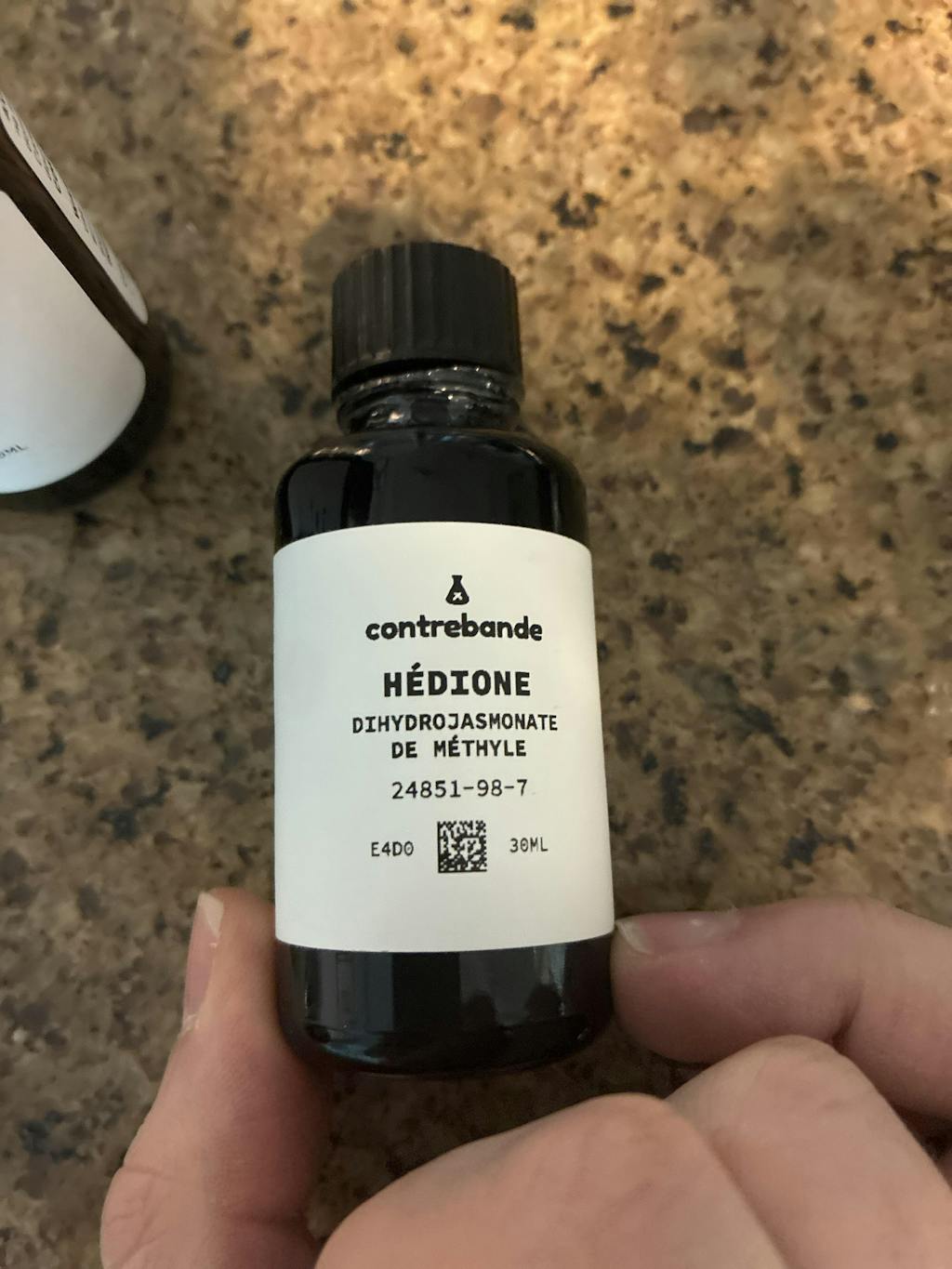 Contrebande is the best company to work with and it ships immediately. Great system of inventory availability/notifications. Vincent is super helpful with my dumb questions. Their Hedione imparts a delicate and fresh aroma, reminiscent of jasmine, with green and floral undertones and a hint of citrus and fruitiness. When used in my fragrance development, it is partnered with other ingredients such as citrus, floral, and woody notes to create a harmonious and well-rounded scent. It's very, very good quality and I am happy it is available at a great price in Canada with a lovely company like Contrebande.